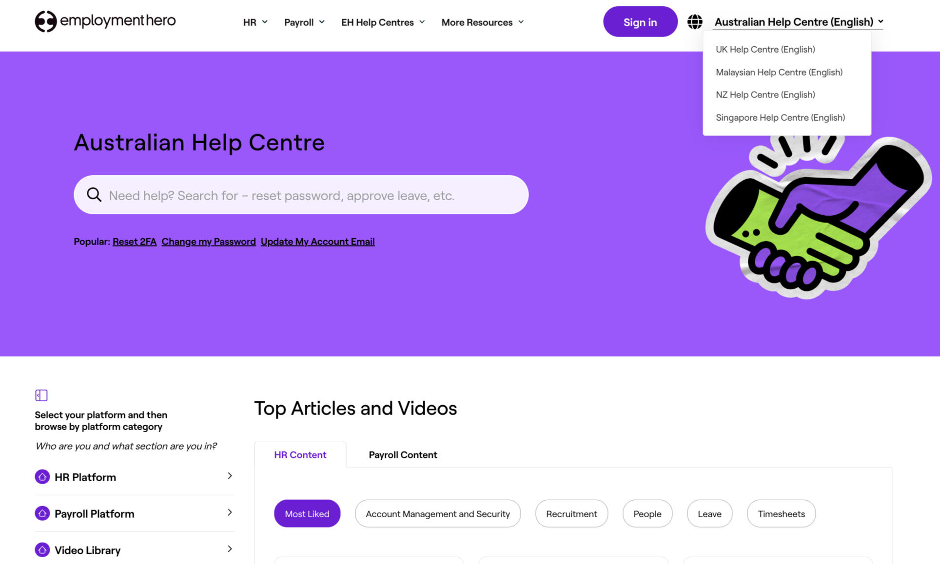 EH Help Centre Redesign & Optimisation (2024)As Content Team Lead, I led the strategic redesign of the Employment Hero Help Centre in 2024, driving a more intuitive user experience and increasing platform efficiency. The previous site had developed organically and required a full restructure to better support our expanding user base.This work contributed to a 20% increase in self-service adoption, significantly reducing support overhead and improving customer satisfaction.Click here for a closer look at the case study.--------